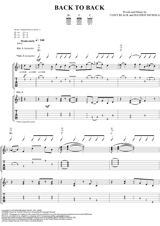 Digital Sheet Music for Back To Back by Clint Black, Hayden Nicholas scored for Guitar Tab/Vocal; id:276133