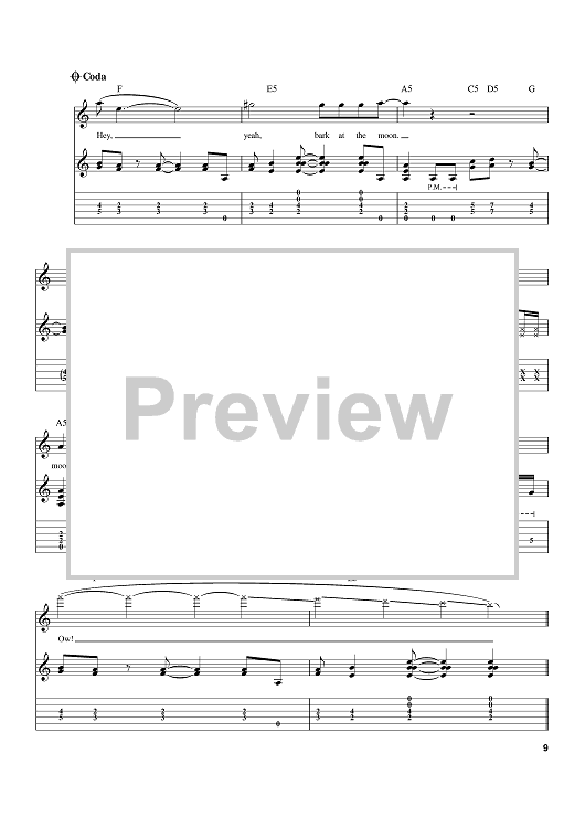 Digital Sheet Music for Bark At The Moon by Ozzy Osbourne scored for Guitar Tab; id:386162