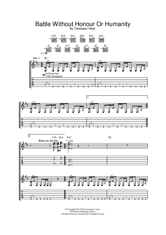 Digital Sheet Music for Battle Without Honor Or Humanity by Tomoyasu Hotei scored for Guitar Tab; id:383263