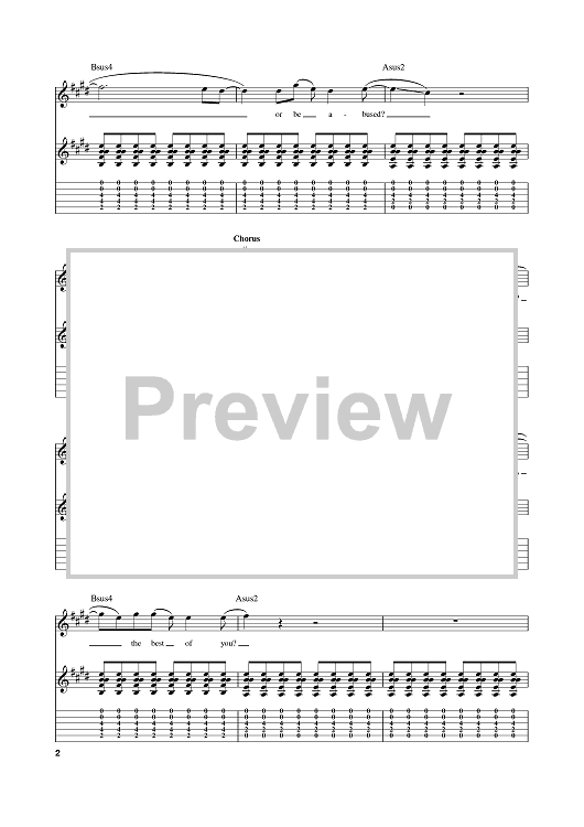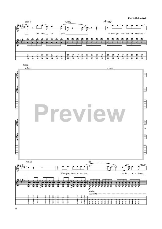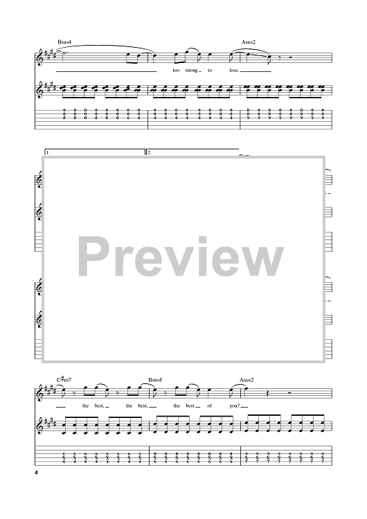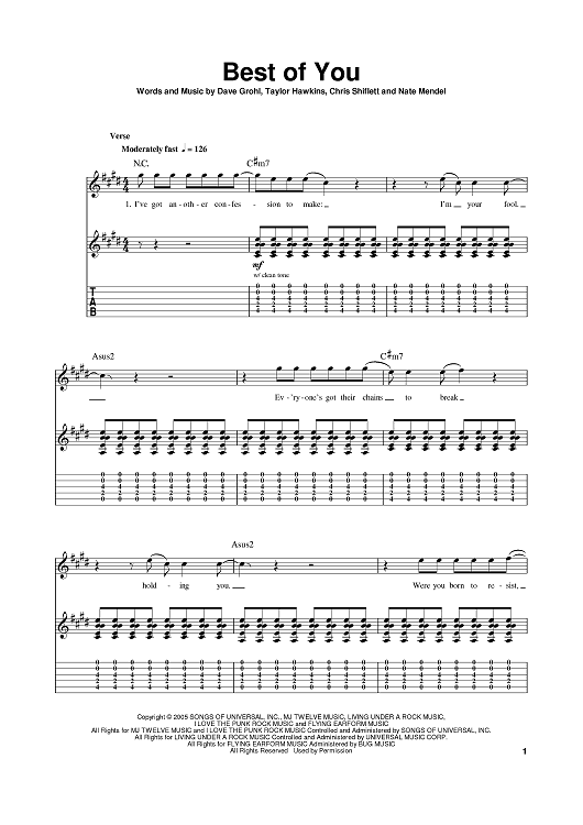 Digital Sheet Music for Best Of You by Foo Fighters, Dave Grohl, Taylor Hawkins, Nate Mendel, Chris Shiflett scored for Guitar Tab; id:389871