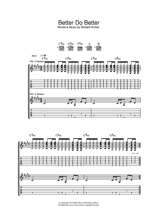 Digital Sheet Music for Better Do Better by Richard Archer, Hard-Fi scored for Guitar Tab; id:387020