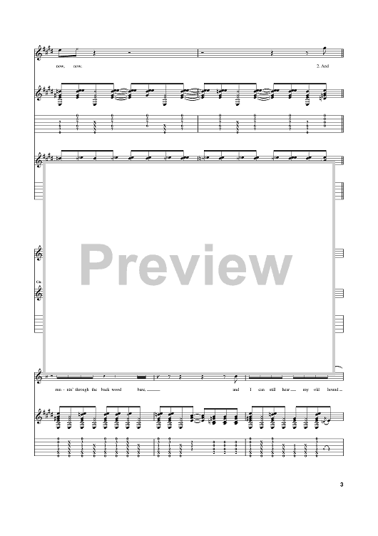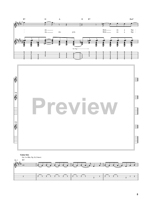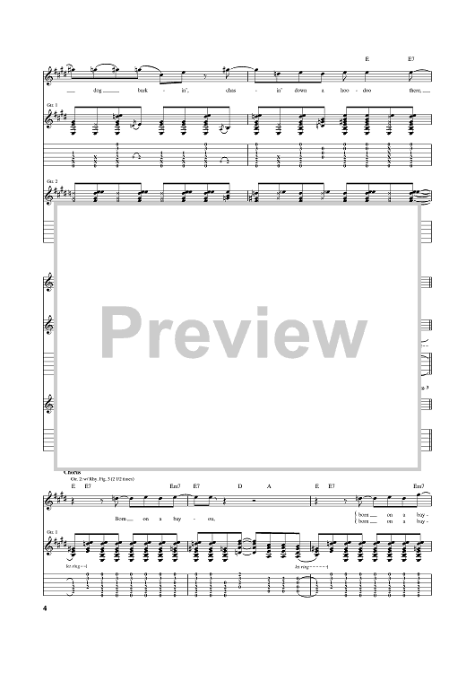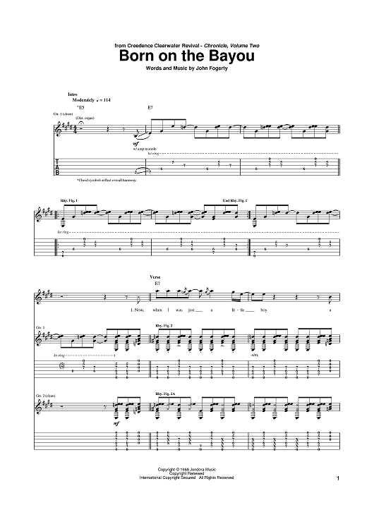 Digital Sheet Music for Born On The Bayou by John Fogerty, Creedence Clearwater Revival scored for Guitar Tab; id:389492