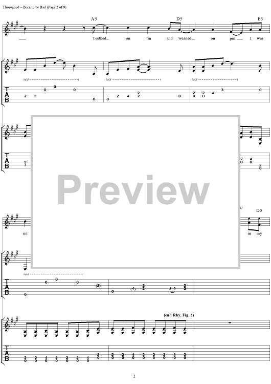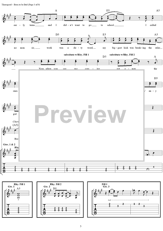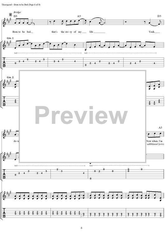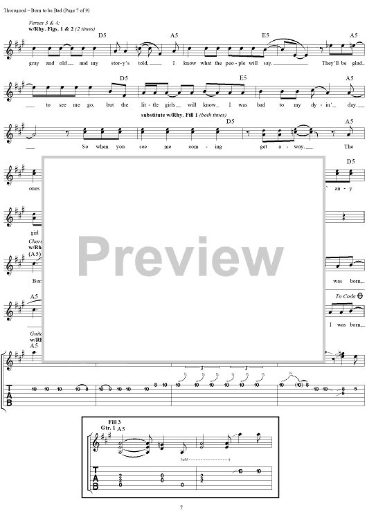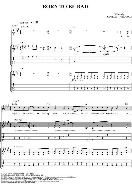 Digital Sheet Music for Born to Be Bad by Lonesome George scored for Guitar Tab/Vocal; id:260043