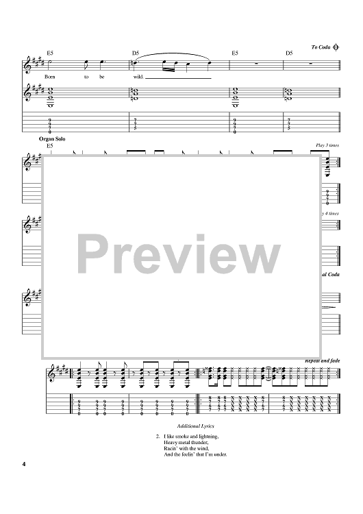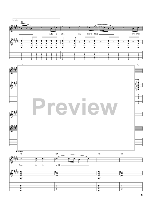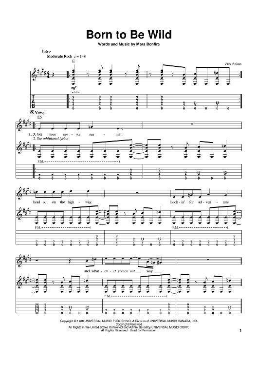 Digital Sheet Music for Born To Be Wild by Steppenwolf, Mars Bonfire scored for Guitar Tab; id:383748
