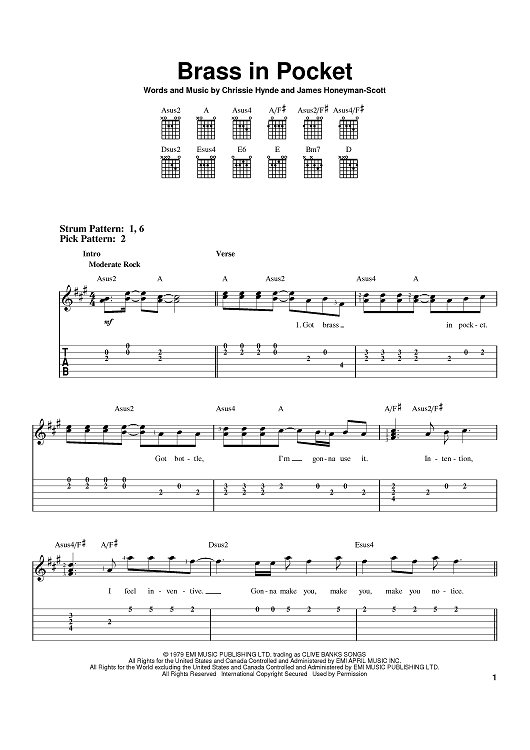 Digital Sheet Music for Brass In Pocket by The Pretenders, James Honeyman-Scott, Chrissie Hynde scored for Easy Guitar Tab; id:387973