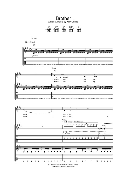 Digital Sheet Music for Brother by Kelly Jones, Stereophonics scored for Guitar Tab; id:385141
