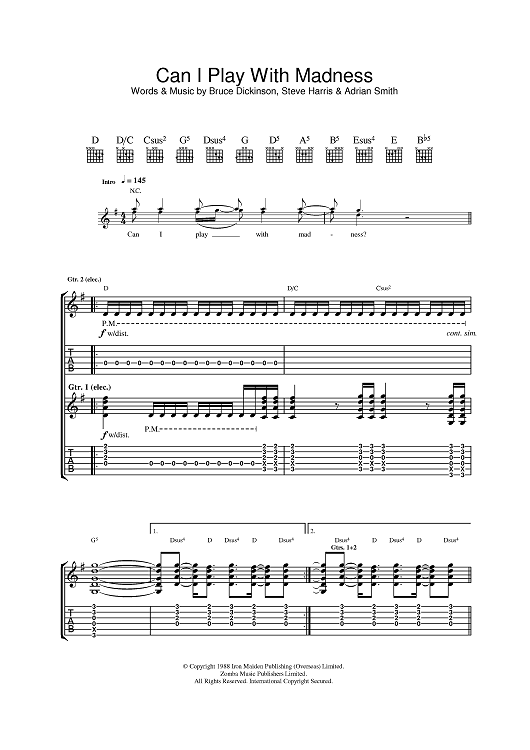 Digital Sheet Music for Can I Play With Madness? by Steve Harris, Bruce Dickinson, Adrian Smith, Iron Maiden scored for Guitar Tab; id:389150