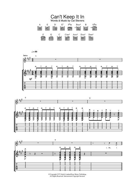 Digital Sheet Music for Can't Keep It In by Cat Stevens scored for Guitar Tab; id:375809