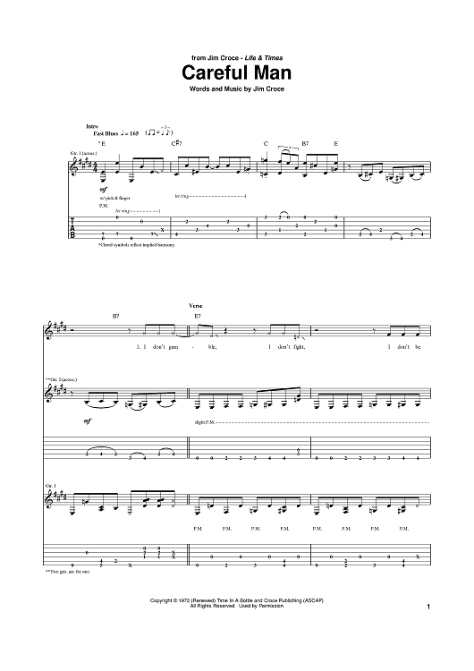 Digital Sheet Music for Careful Man by Jim Croce scored for Guitar Tab; id:383555