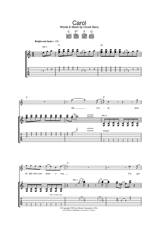 Digital Sheet Music for Carol by Chuck Berry scored for Guitar Tab; id:390813
