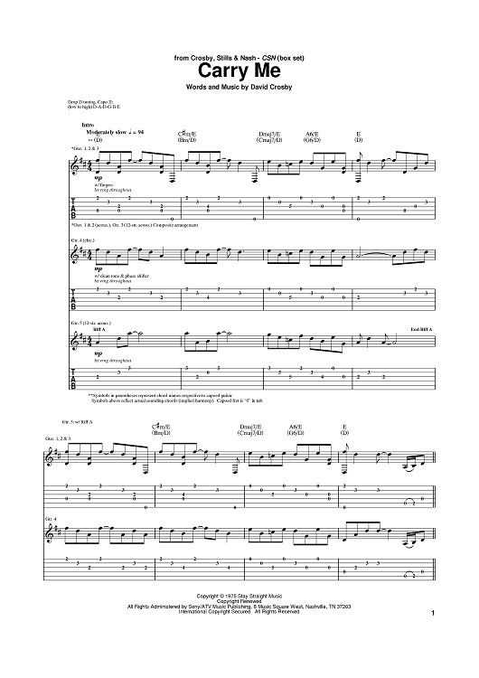 Digital Sheet Music for Carry Me by David Crosby, Crosby, Stills, Nash & Young scored for Guitar Tab; id:383846