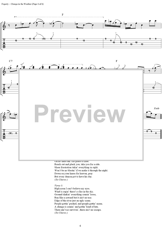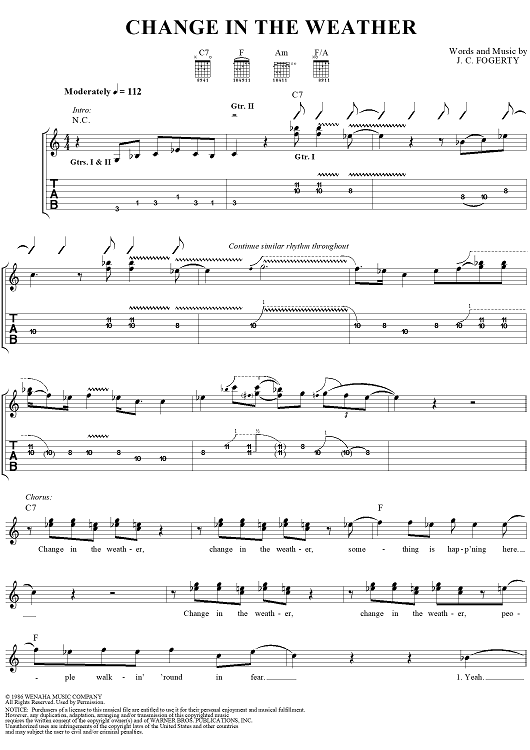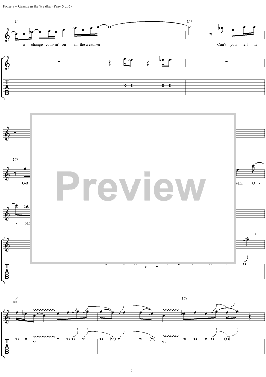 Digital Sheet Music for Change in the Weather by Buddy Guy, John Fogerty scored for Guitar Tab/Vocal; id:119644