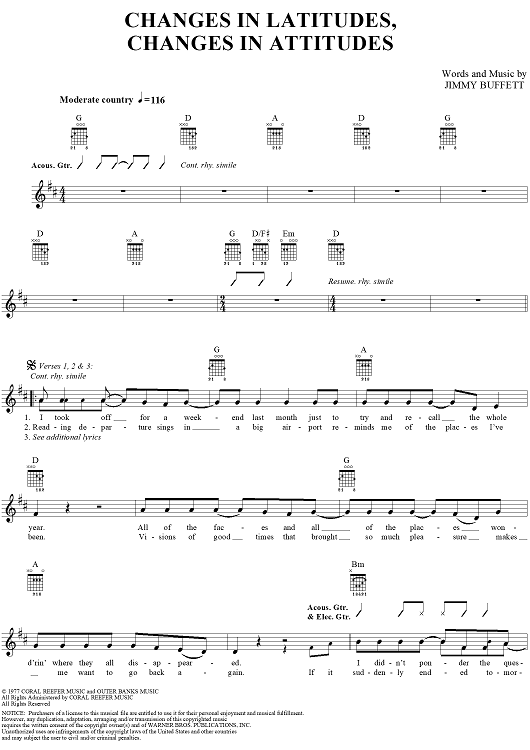 "Changes in Latitudes, Changes in Attitudes" Sheet Music by Jimmy Buffett