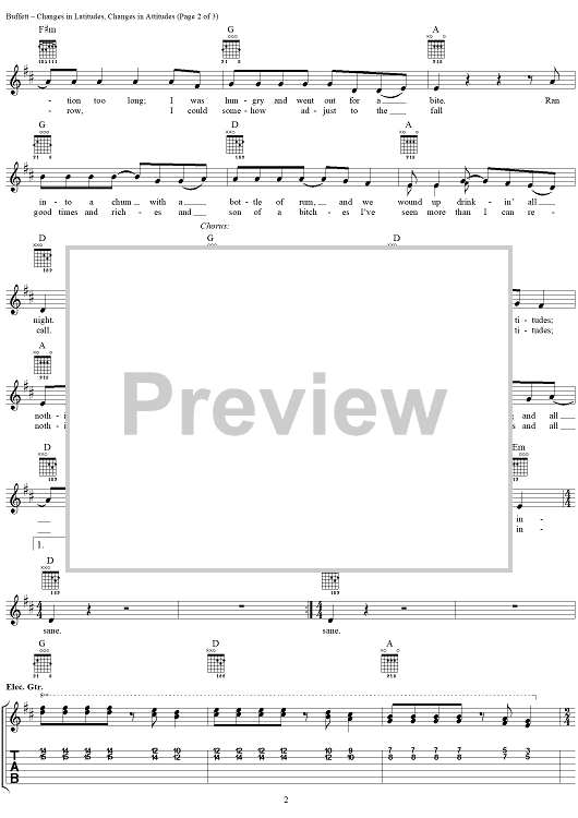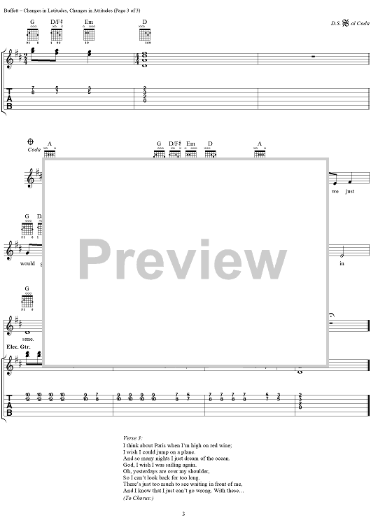 Digital Sheet Music for Changes in Latitudes, Changes in Attitudes by Mike Taylor, Jimmy Buffett scored for Guitar Tab/Vocal; id:284339