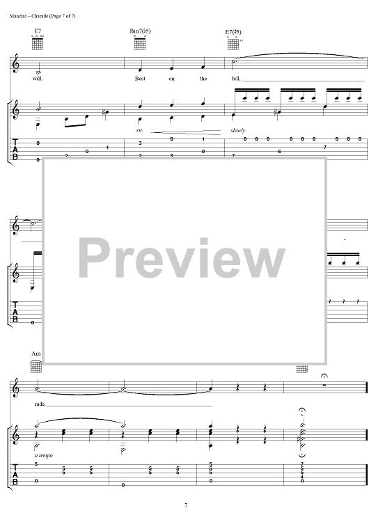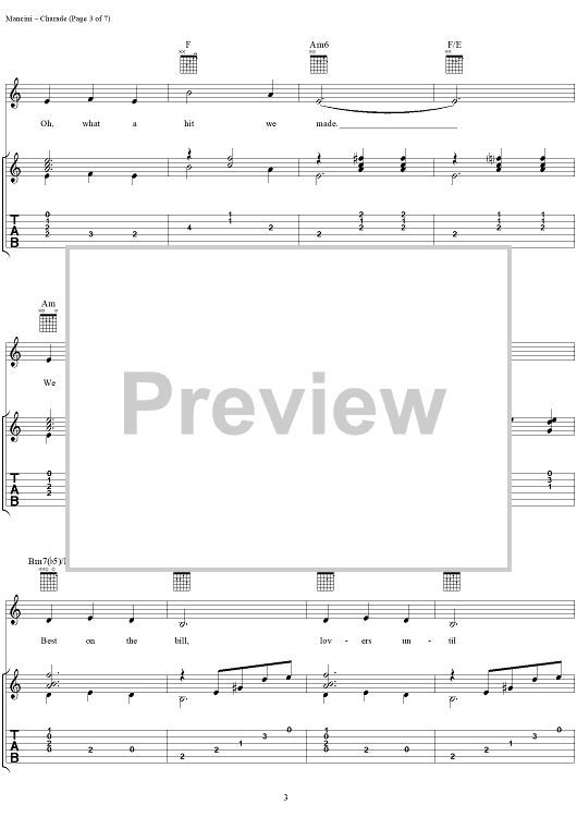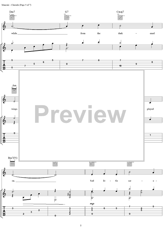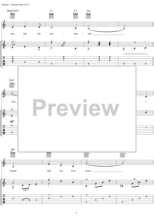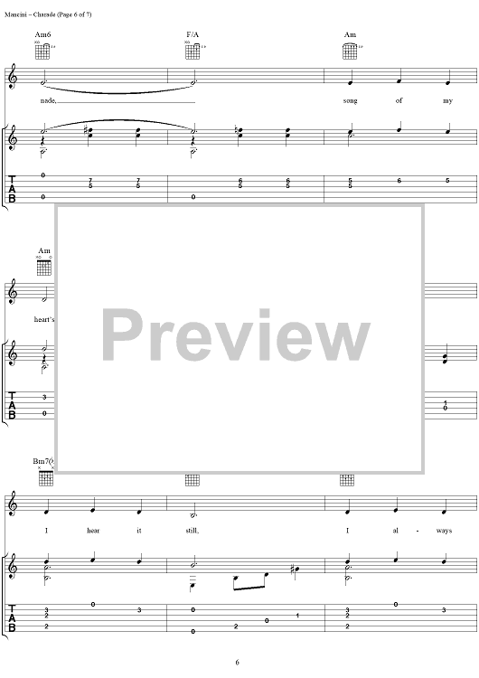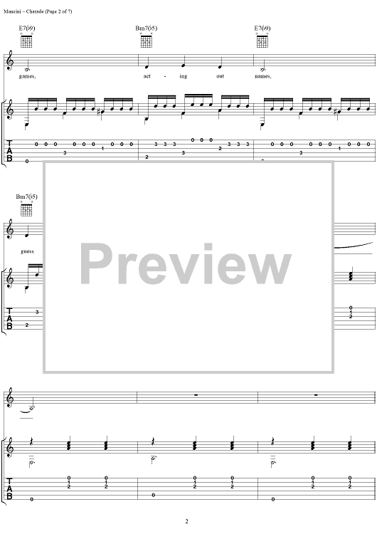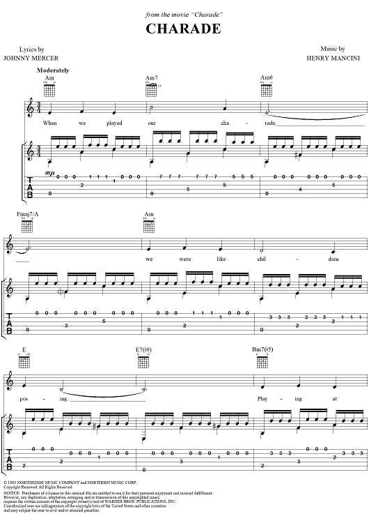 Digital Sheet Music for Charade by Henry Mancini, Johnny Mercer, Gregory Coleman scored for Guitar Tab/Vocal; id:251383