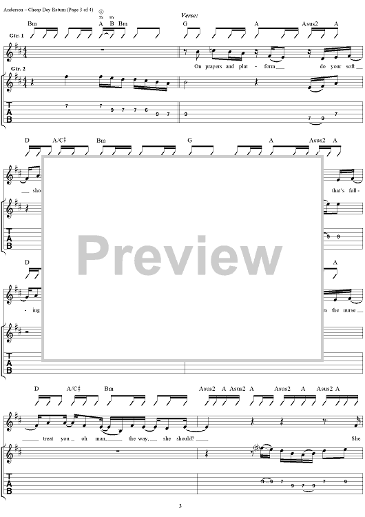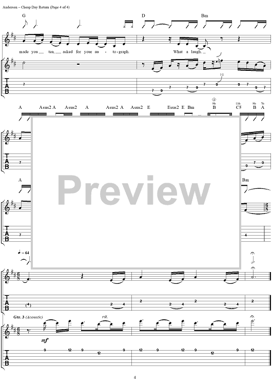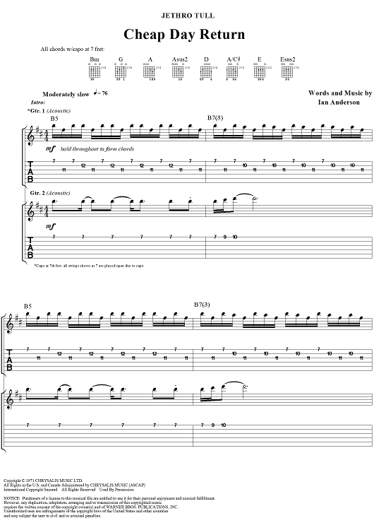 "Cheap Day Return" Sheet Music by Jethro Tull