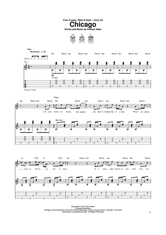 Digital Sheet Music for Chicago by Graham Nash, Crosby, Stills, Nash & Young scored for Guitar Tab; id:383843
