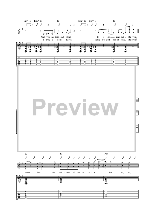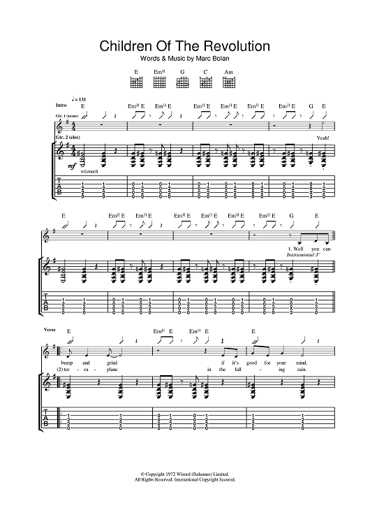 Digital Sheet Music for Children Of The Revolution by T.Rex scored for Guitar Tab; id:375763
