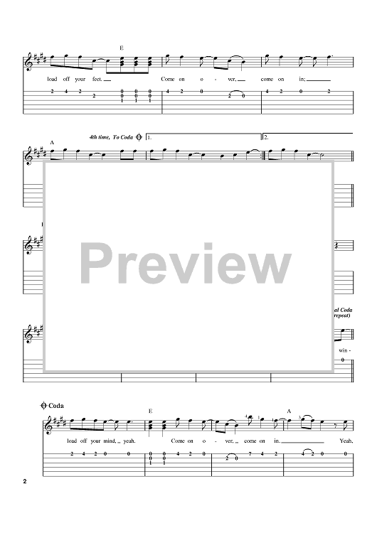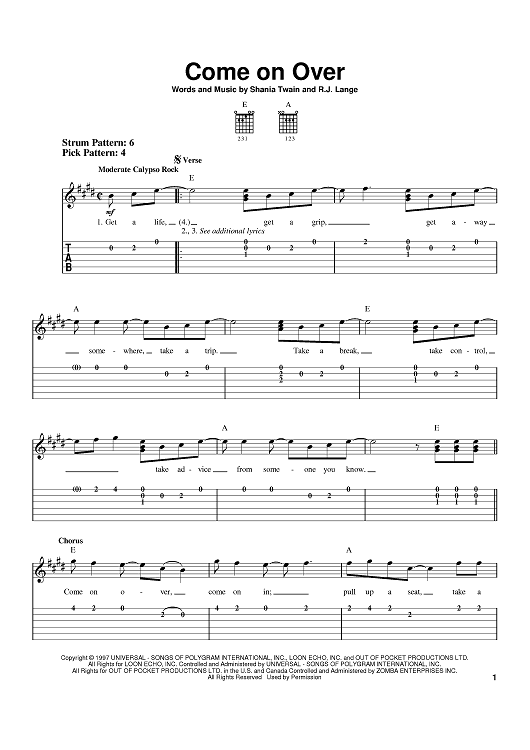 Digital Sheet Music for Come On Over by Shania Twain, Robert Lange scored for Easy Guitar Tab; id:383588