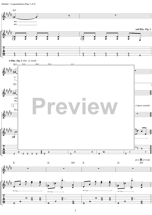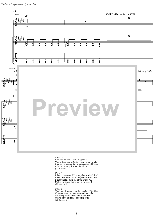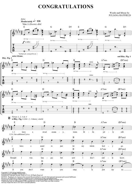 Digital Sheet Music for Congratulations by Juliana Hatfield scored for Guitar Tab/Vocal; id:119557