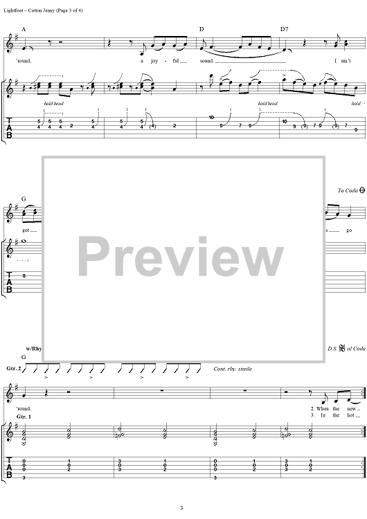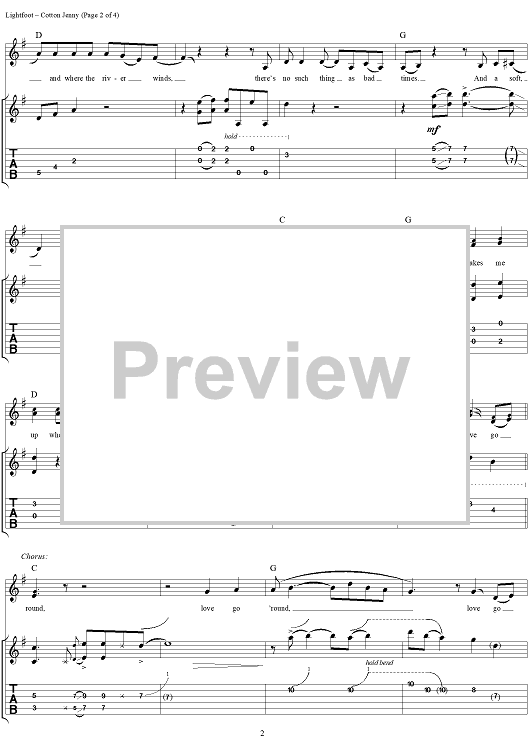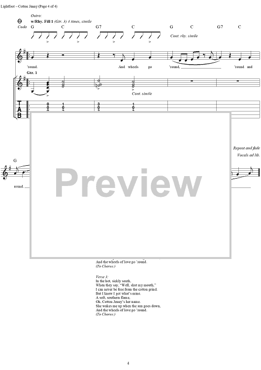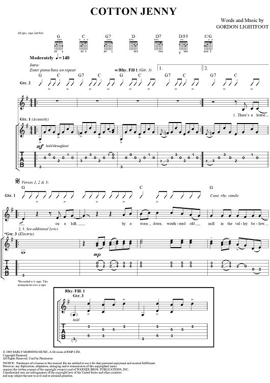 Digital Sheet Music for Cotton Jenny by Gordon Lightfoot scored for Guitar Tab/Vocal; id:285456
