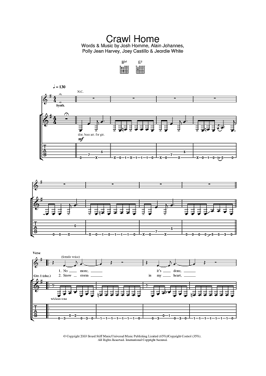 Digital Sheet Music for Crawl Home by Joey Castillo, Desert Sessions, P J Harvey, Josh Homme, Alain Johannes, Jeordie White scored for Guitar Tab; id:385408