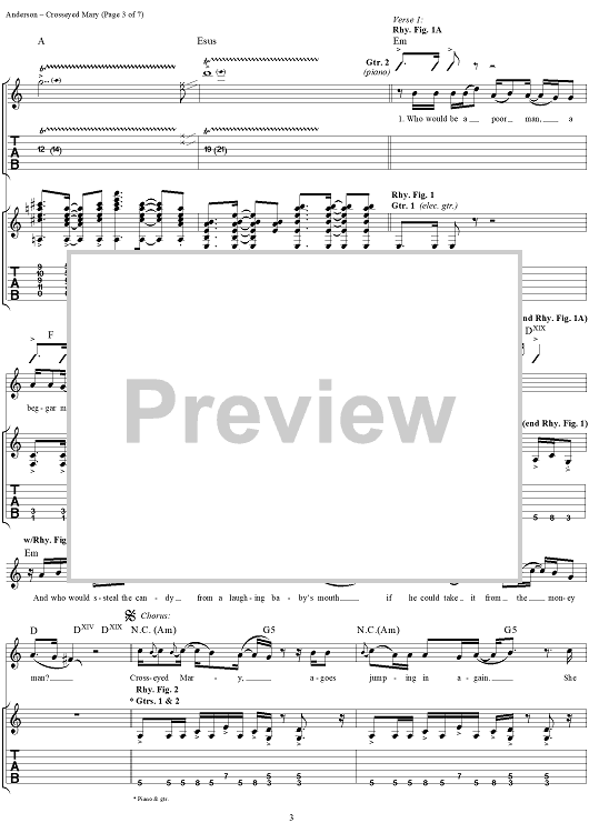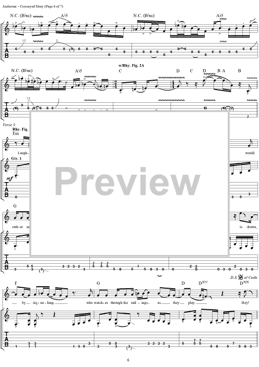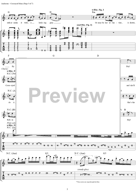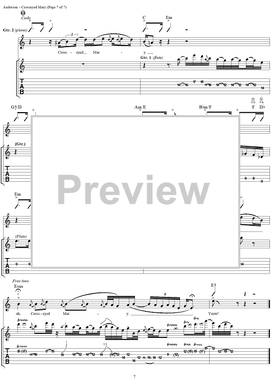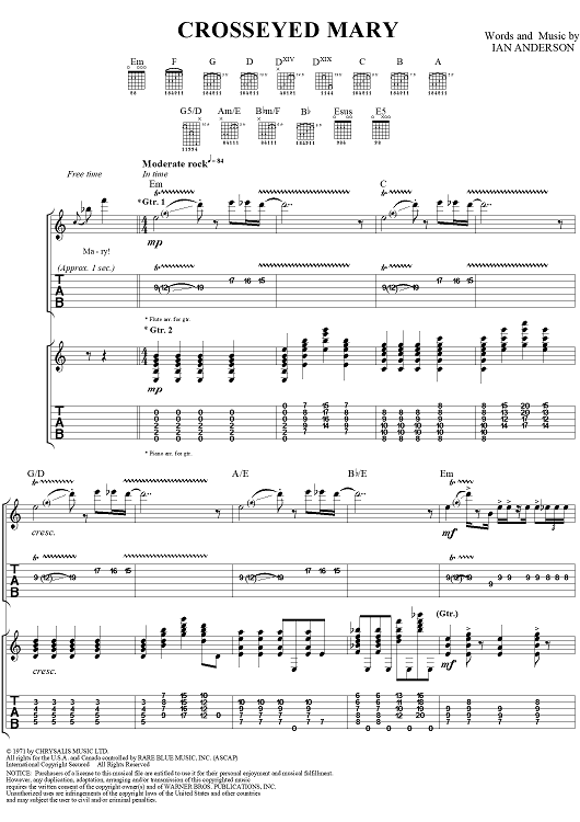 "Crosseyed Mary" Sheet Music by Jethro Tull