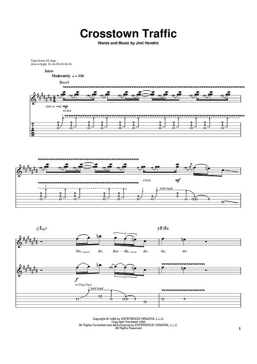 "Crosstown Traffic" Sheet Music by Jimi Hendrix