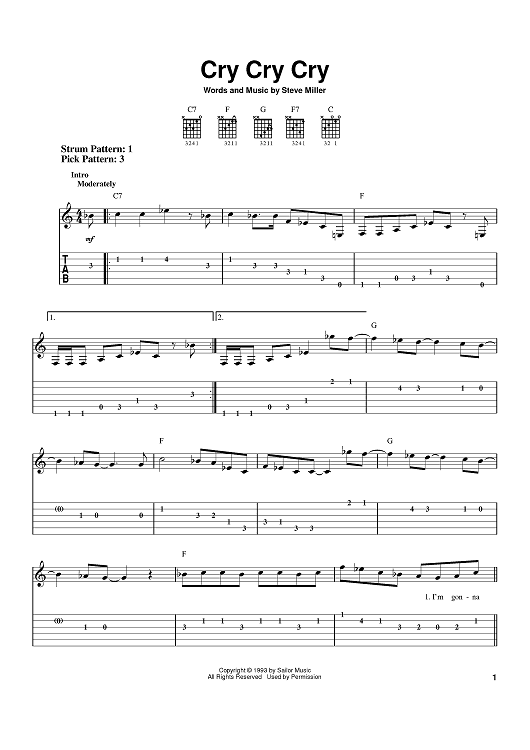 Digital Sheet Music for Cry Cry Cry by Steve Miller, Steve Miller Band scored for Easy Guitar Tab; id:386214