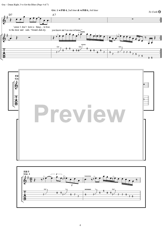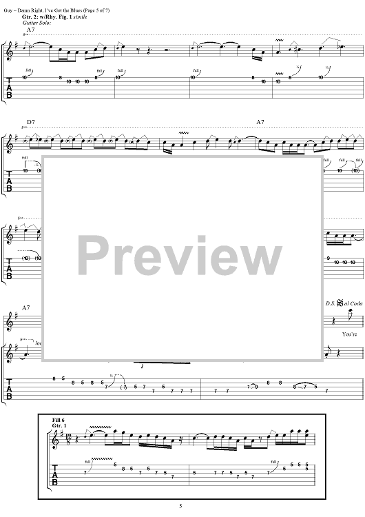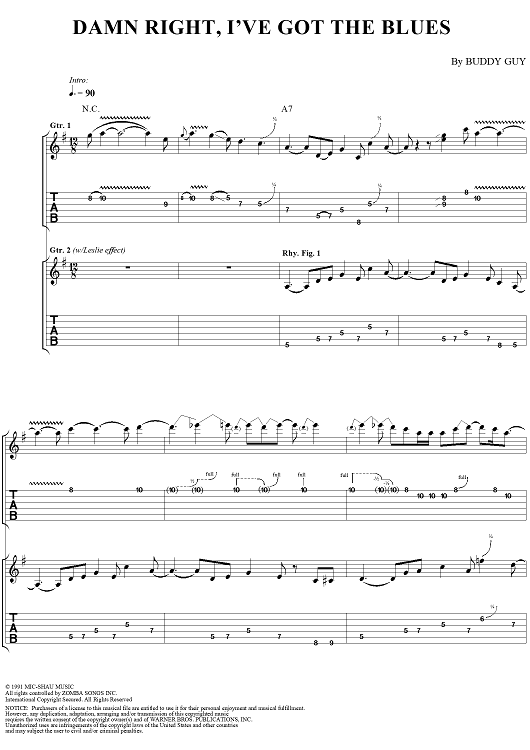 Digital Sheet Music for Damn Right, I've Got The Blues by Buddy Guy scored for Guitar Tab/Vocal; id:267784