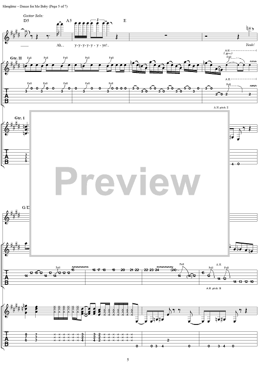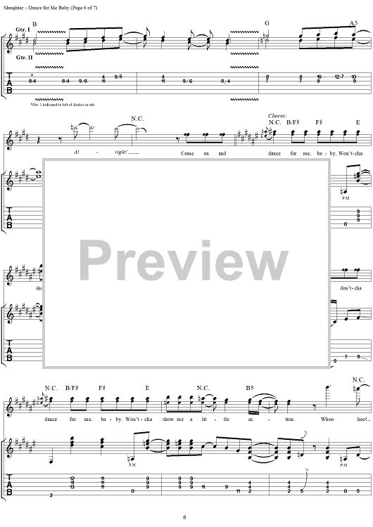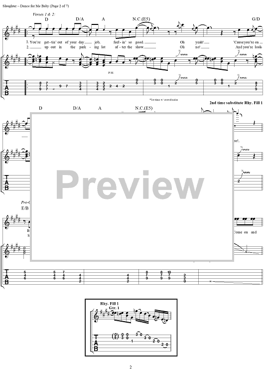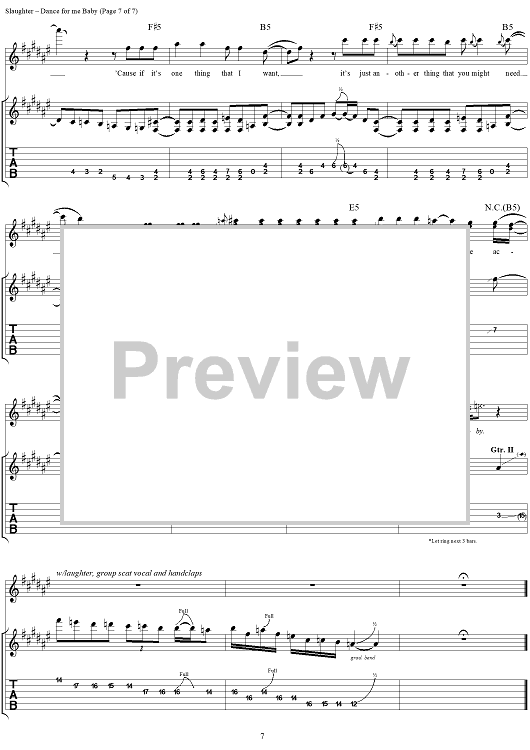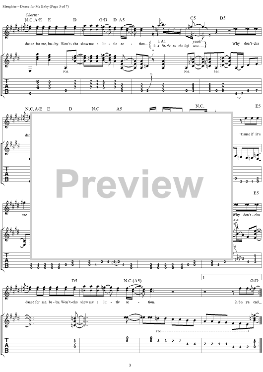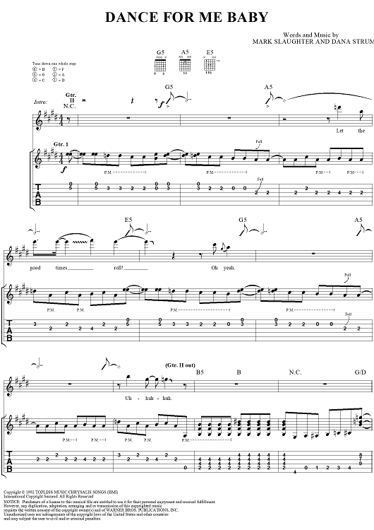 Digital Sheet Music for Dance For Me Baby by Slaughter, Mark Slaughter, Dan Truman scored for Guitar Tab/Vocal; id:257930