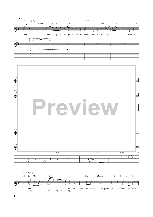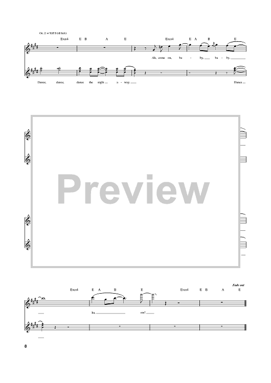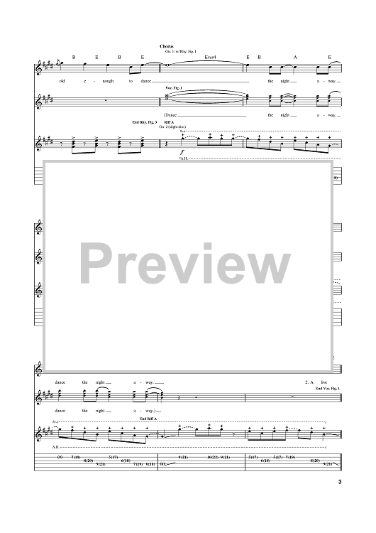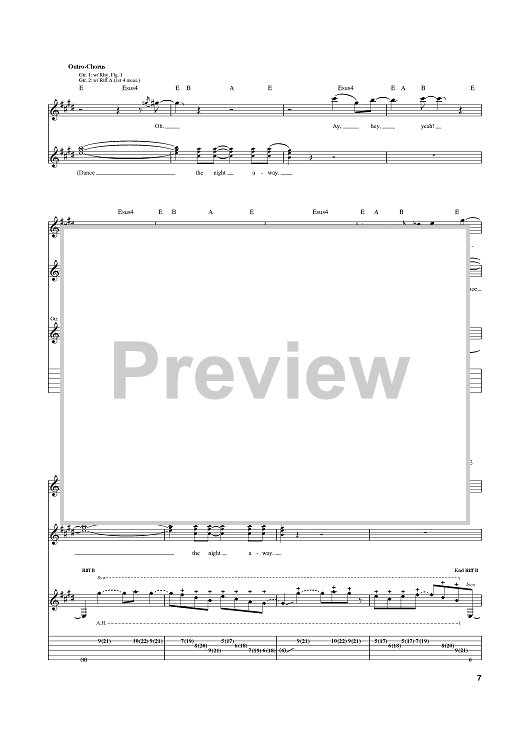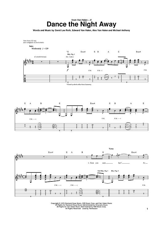 Digital Sheet Music for Dance The Night Away by Eddie Van Halen, David Lee Roth, Michael Anthony, Alex Van Halen, Van Halen scored for Guitar Tab; id:385940