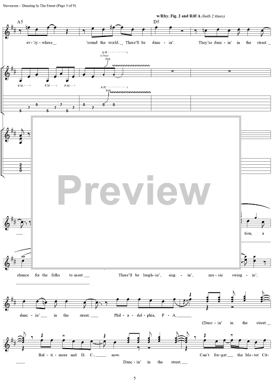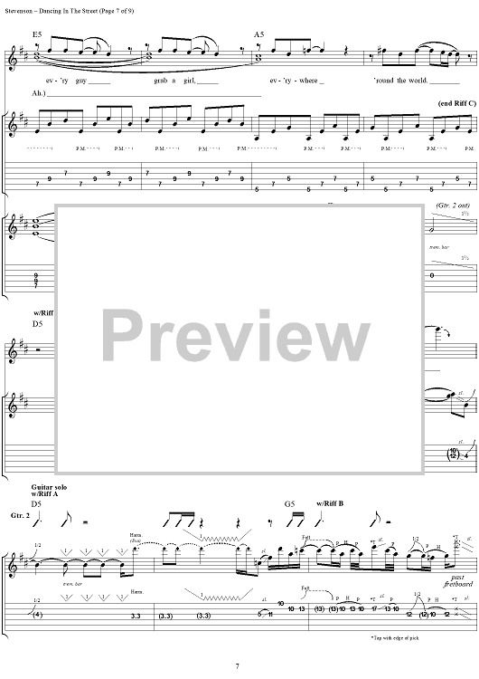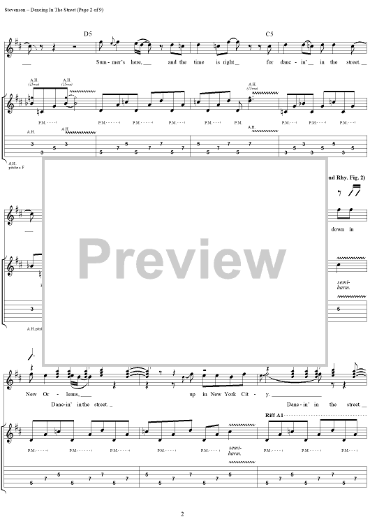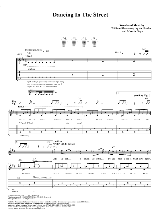 Digital Sheet Music for Dancin' In The Street by Marvin Gaye, William Stevenson, Ivy Jo Hunter, Van Halen scored for Guitar Tab/Vocal; id:263557