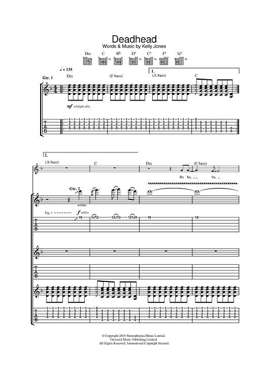 Digital Sheet Music for Deadhead by Kelly Jones, Stereophonics scored for Guitar Tab; id:385142