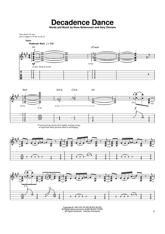 Digital Sheet Music for Decadence Dance by Nuno Bettencourt, Gary Cherone, Extreme scored for Guitar Tab; id:390758