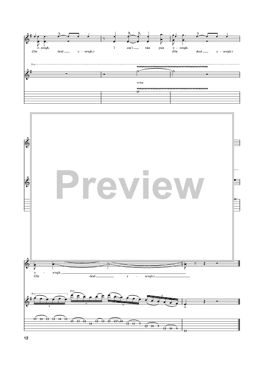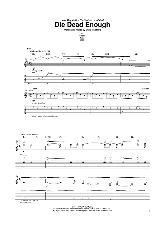 Digital Sheet Music for Die Dead Enough by Megadeth, Dave Mustaine scored for Guitar Tab; id:384914