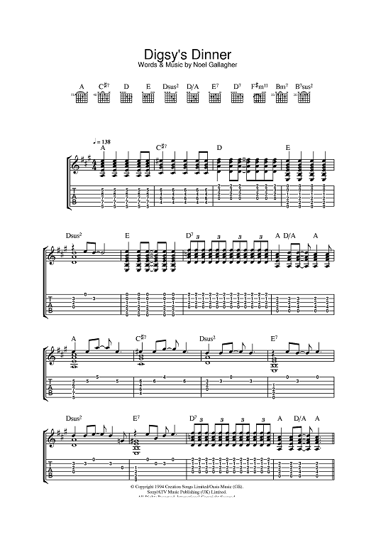 Digital Sheet Music for Digsy's Dinner by Noel Gallagher, Oasis scored for Guitar Tab; id:385680