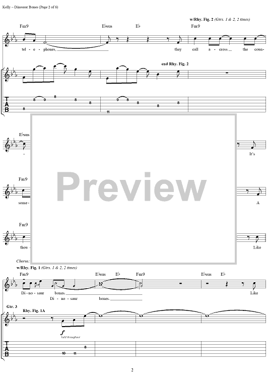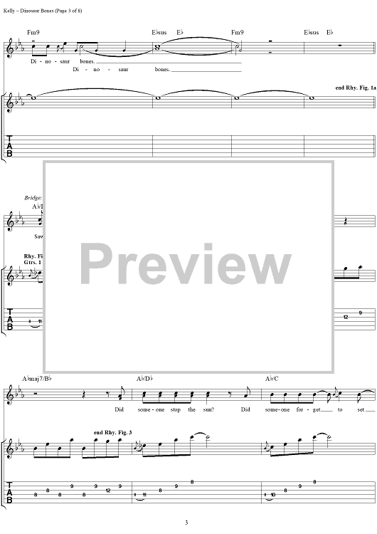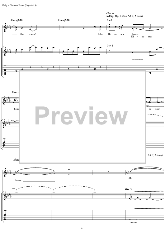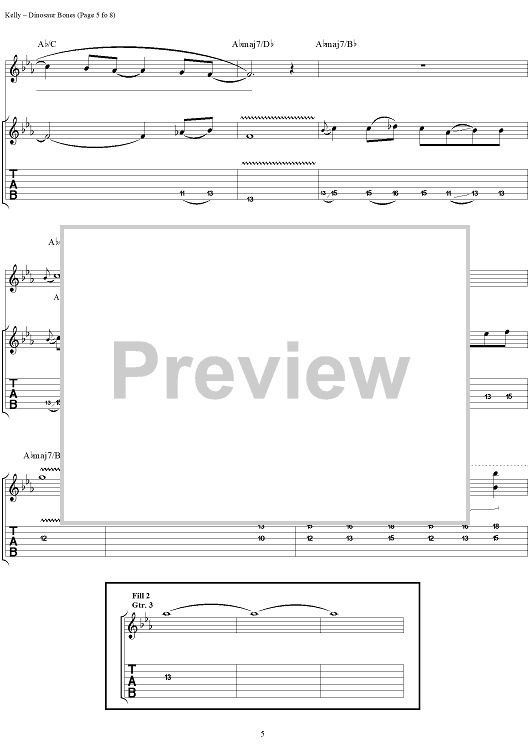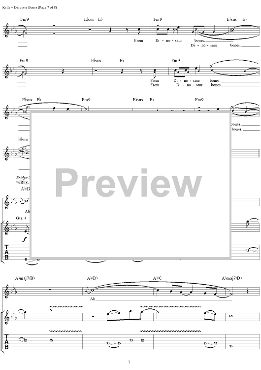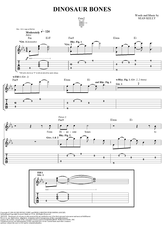 Digital Sheet Music for Dinosaur Bones by The Samples, Sean Kelly scored for Guitar Tab/Vocal; id:124384