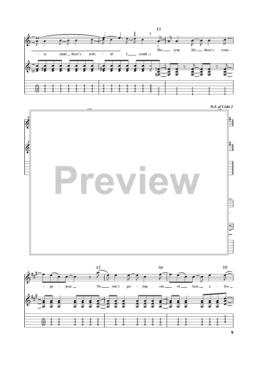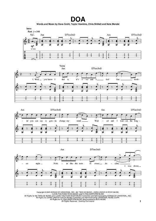 Digital Sheet Music for DOA by Foo Fighters, Dave Grohl, Taylor Hawkins, Nate Mendel, Chris Shiflett scored for Guitar Tab; id:389872