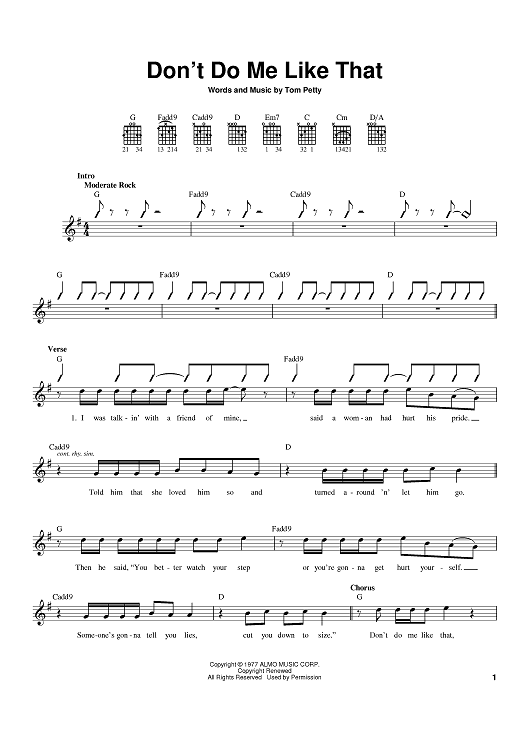 Digital Sheet Music for Don't Do Me Like That by Tom Petty scored for Lead Sheet with Guitar Grids; id:394773