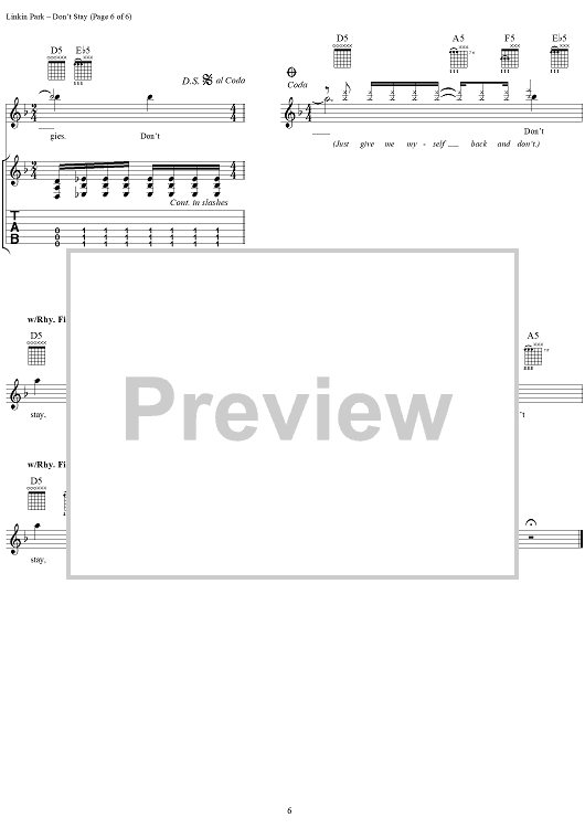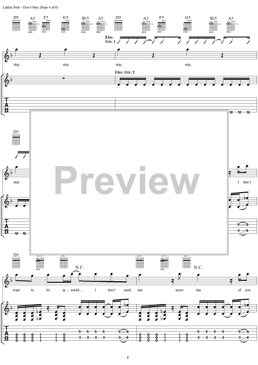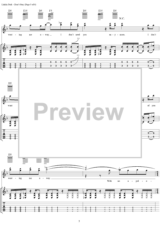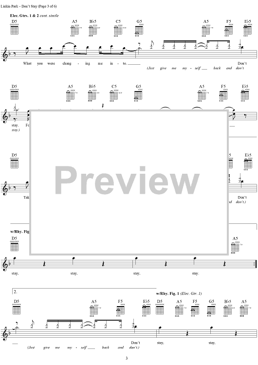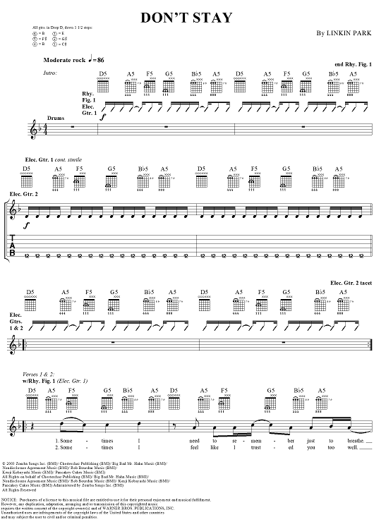 Digital Sheet Music for Don't Stay by Linkin Park scored for Guitar Tab/Vocal; id:297390