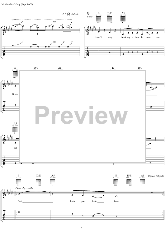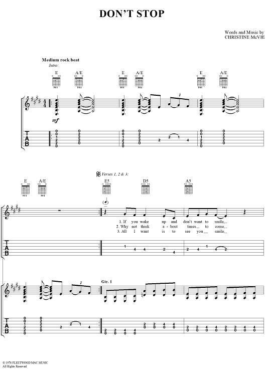 "Don't Stop" Sheet Music by Fleetwood Mac