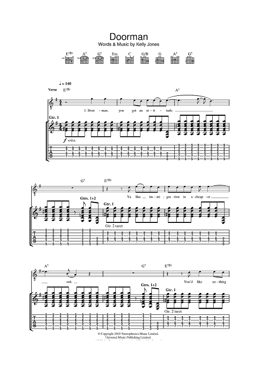 Digital Sheet Music for Doorman by Kelly Jones, Stereophonics scored for Guitar Tab; id:385144
