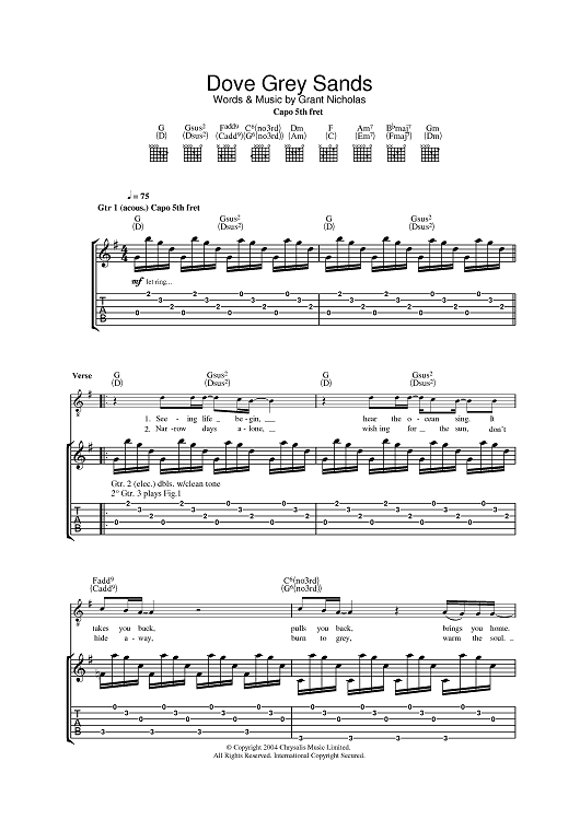 Digital Sheet Music for Dove Grey Sands by Feeder, Grant Nicholas scored for Guitar Tab; id:383408