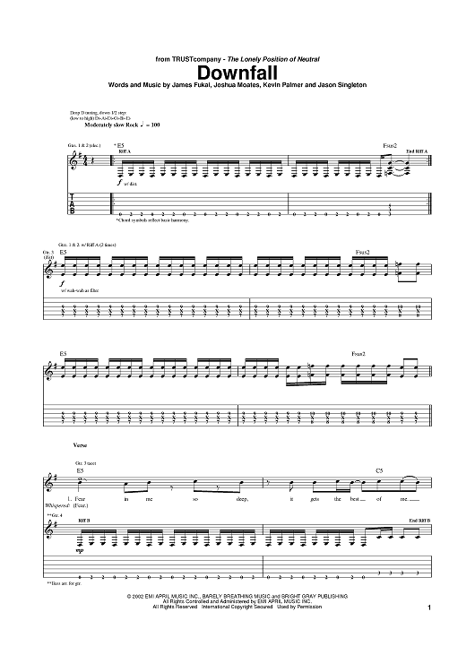 Digital Sheet Music for Downfall by James Fukai, Joshua Moates, Jason Singleton, TRUSTcompany scored for Guitar Tab; id:369698