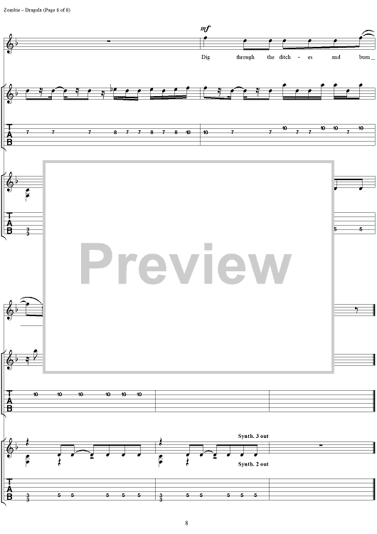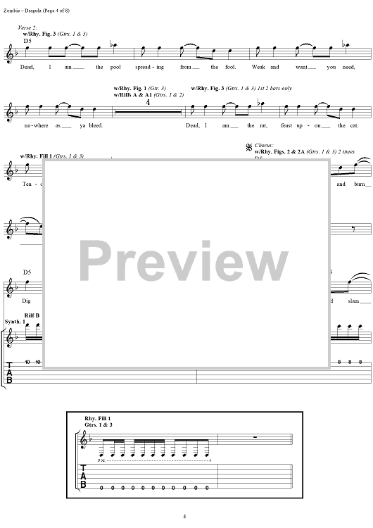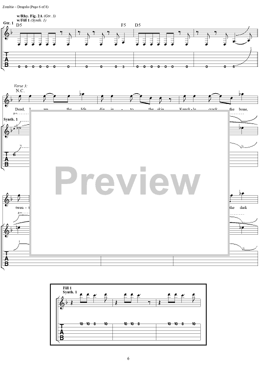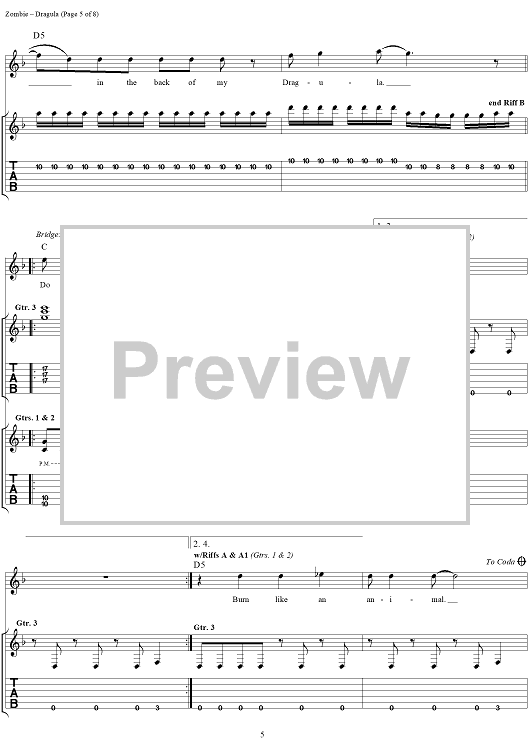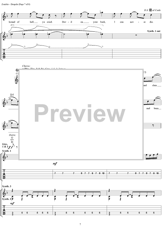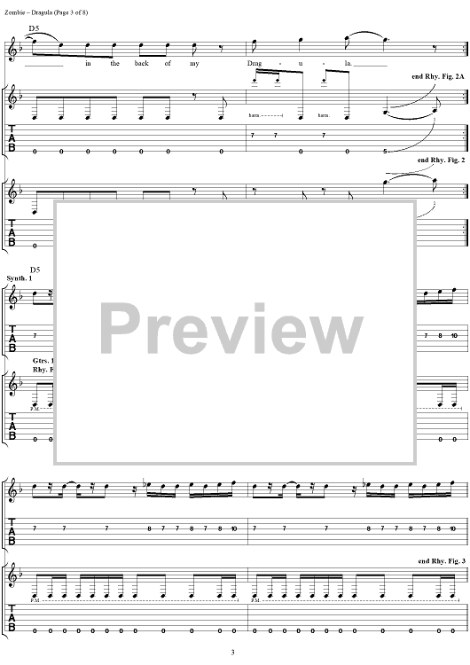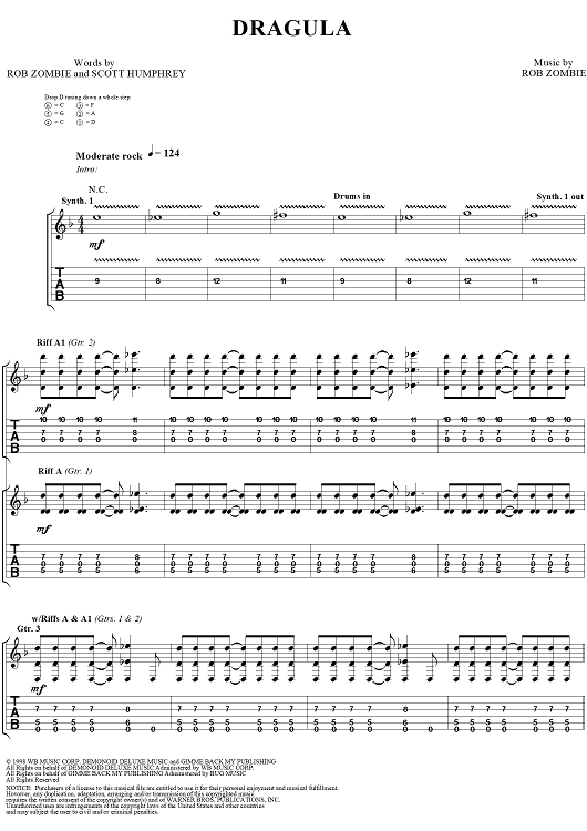 Digital Sheet Music for Dragula by Rob Zombie scored for Guitar Tab/Vocal; id:262593