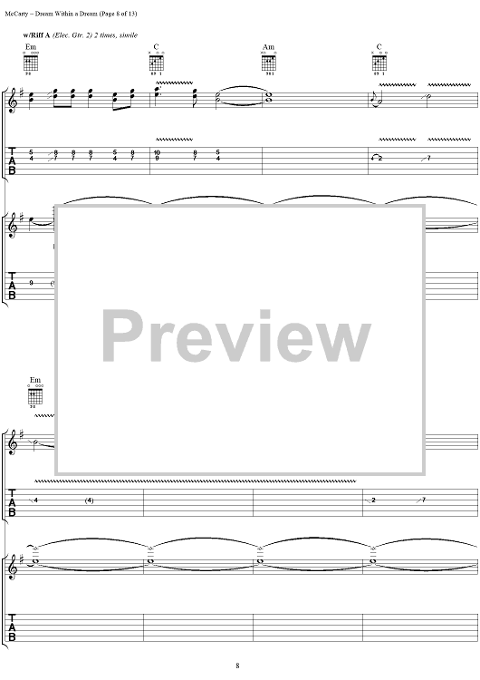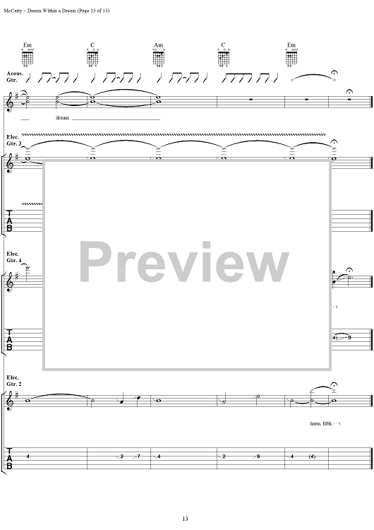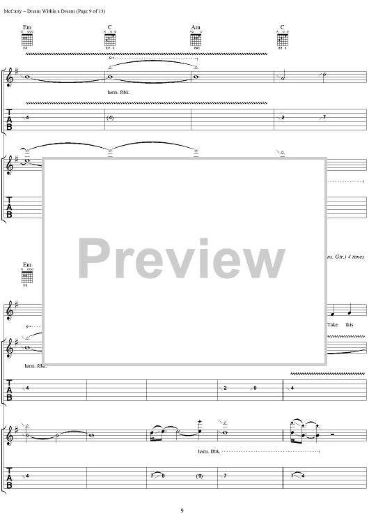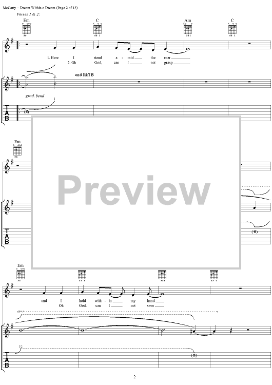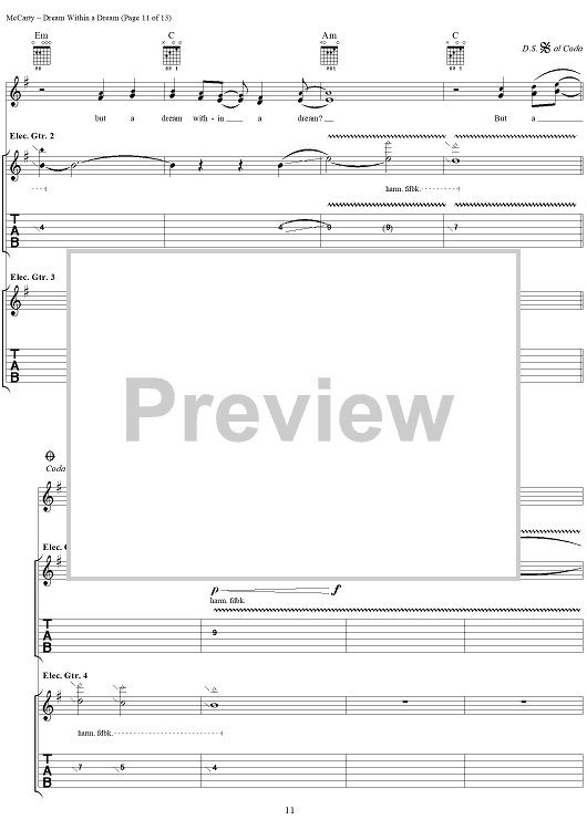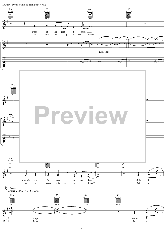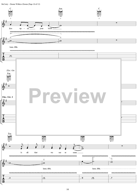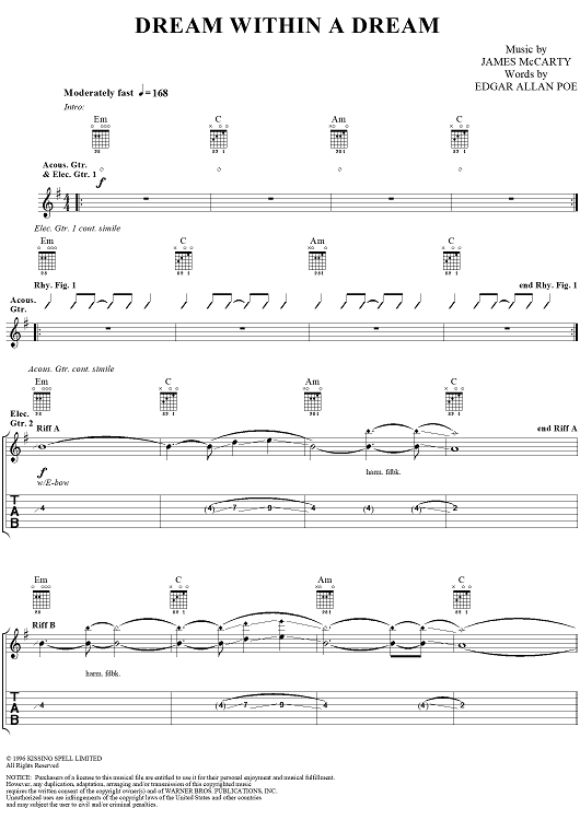 Digital Sheet Music for Dream Within a Dream by Edgar Allan Poe, Yardbirds, James McCarty scored for Guitar Tab/Vocal; id:304234