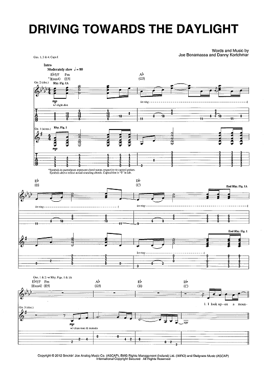 "Driving Towards The Daylight" Sheet Music by Joe Bonamassa