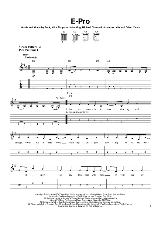 Digital Sheet Music for E-Pro by King Adrock, MCA, John King, Beck, Mike D, Mike Simpson scored for Easy Guitar Tab; id:385930