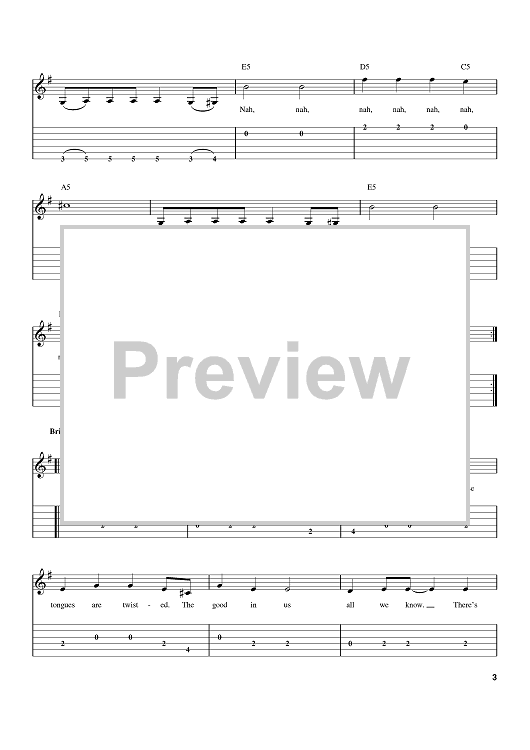 Scored For: Easy Guitar Tab